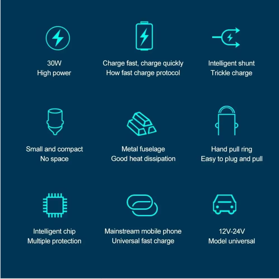 Fast Charging Car Charger Support 100W PD USB QC3.0 Mini Car Charger Adapter for iPhone, Samsung , Huawei etc.